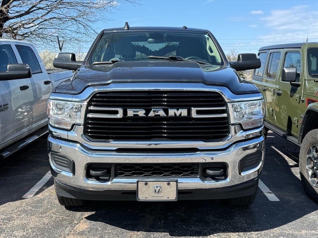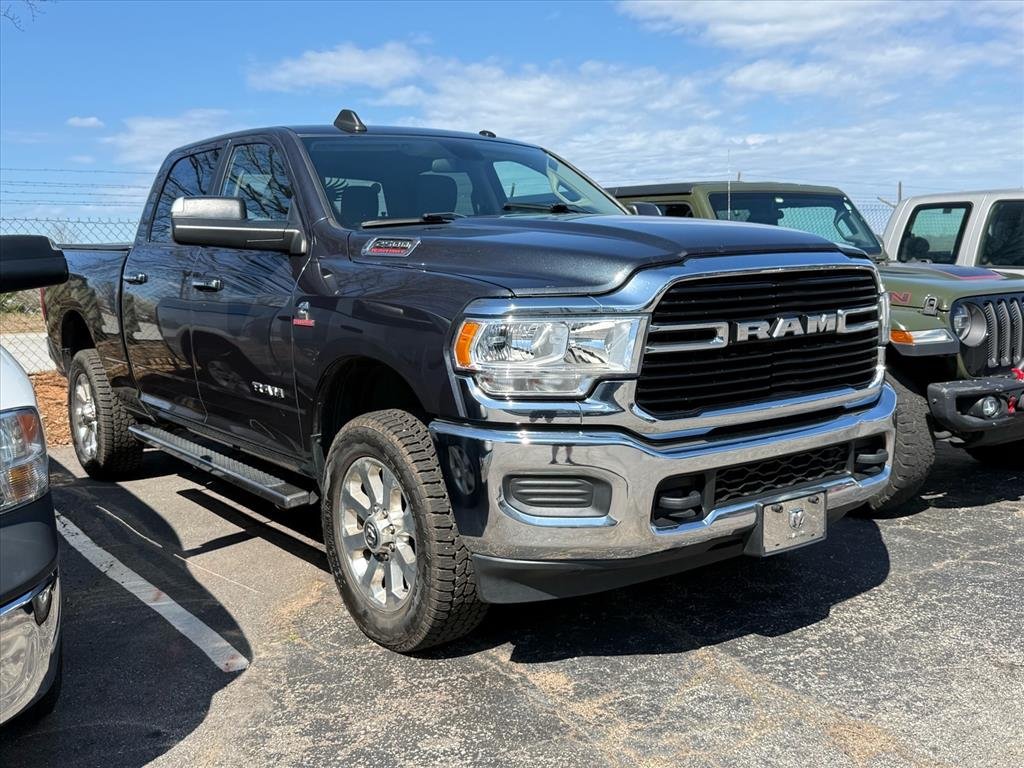 Take on any job with this rugged 2019 Ram 2500 Big Horn Crew Cab 4x4, finished in a sleek gray exterior. Powered by the legendary Cummins 6.7L Diesel Turbo I6 engine and a 6-speed shiftable automatic transmission, this truck is built for strength and reliability. The Big Horn package delivers comfort and convenience with Uconnect infotainment, Bluetooth, voice-operated controls, and a 5-inch touchscreen. Towing is a breeze with a Class V trailer hitch, trailer brake controller, 7-pin wiring, and heavy-duty towing mirrors. Stay safe and in control with 4-wheel ABS, stability and traction control, and a rearview camera. Additional highlights include chrome bumpers, heated side mirrors, power locking tailgate, adjustable headrests, and rear privacy glass. Whether you're hauling, towing, or hitting the road for work or play, this Ram 2500 is ready for it all. Schedule your test drive today and see why the Big Horn stands out in the heavy-duty truck world.