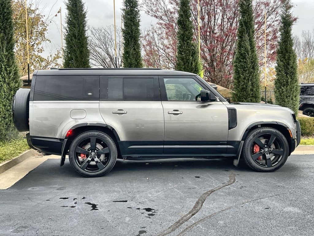 CARFAX One-Owner. Certified. Silicon Silver Premium Metallic 2024 Land Rover Defender 130 X 4WD 8-Speed Automatic 3.0L I6 Both set of Key Fobs, 14-Way Climate Electric Memory Front Seats, 3rd row seats: split-bench, 4-Zone Climate Control, A-Frame Protection Bar, Adaptive suspension, Apple CarPlay Android Auto, Auto High-beam Headlights, Automatic temperature control, Black Exposed Rear Recovery Eyes, Extended Black Exterior Pack, Exterior Protection Pack, Front dual zone A/C, Fully automatic headlights, Garage door transmitter: HomeLink, Gloss Black Front Grille, Heads-Up Display, Heated front seats, Heated rear seats, Heated steering wheel, Navigation system: Connected Navigation PIVI Pro, Power moonroof, Radio: 400W 11 Speaker Meridian Sound System, Rain sensing wipers, Raised Air Intake, Ventilated front seats, Wheels: 22' Gloss Black Finish Style 5098, Windsor Leather Seat Trim.