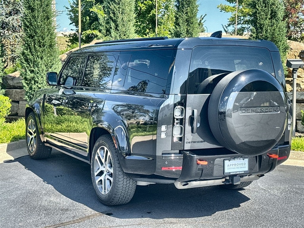 Land Rover Certified! CARFAX One-Owner. Clean CARFAX. Odometer is 2945 miles below market average! Carpathian Gray Premium Metallic 2024 Land Rover Defender 130 X 4WD 8-Speed Automatic 3.0L I6 Land Rover Certified, 3rd row seats: split-bench, 4-Zone Climate Control, Active Cruise Control, Adaptive suspension, Apple CarPlay Android Auto, Auto-dimming Rear-View mirror, Black Contrast Signature Graphic, Cold Climate Package, Comfort Convenience Pack, Compass, Extended Black Exterior Pack, Exterior Parking Camera Rear, Front Bucket Seats, Garage door transmitter: HomeLink, Gloss Black Front Grille, Headlight Power Wash, Heated front seats, Heated rear seats, Heated Washer Jets, Heated Windscreen, Navigation system: Connected Navigation PIVI Pro, Panic alarm, Power driver seat, Power moonroof, Power windows, Premium Cabin Lighting, Radio: 400W 11 Speaker Meridian Sound System, Refrigerated Center Console, Remote keyless entry, Security system, Steering wheel mounted audio controls, Tow Hitch Receiver, Wheels: 20' Polished Silver Style 5098, Wi-Fi Enabled w/Data Plan, Windsor Leather Seat Trim.