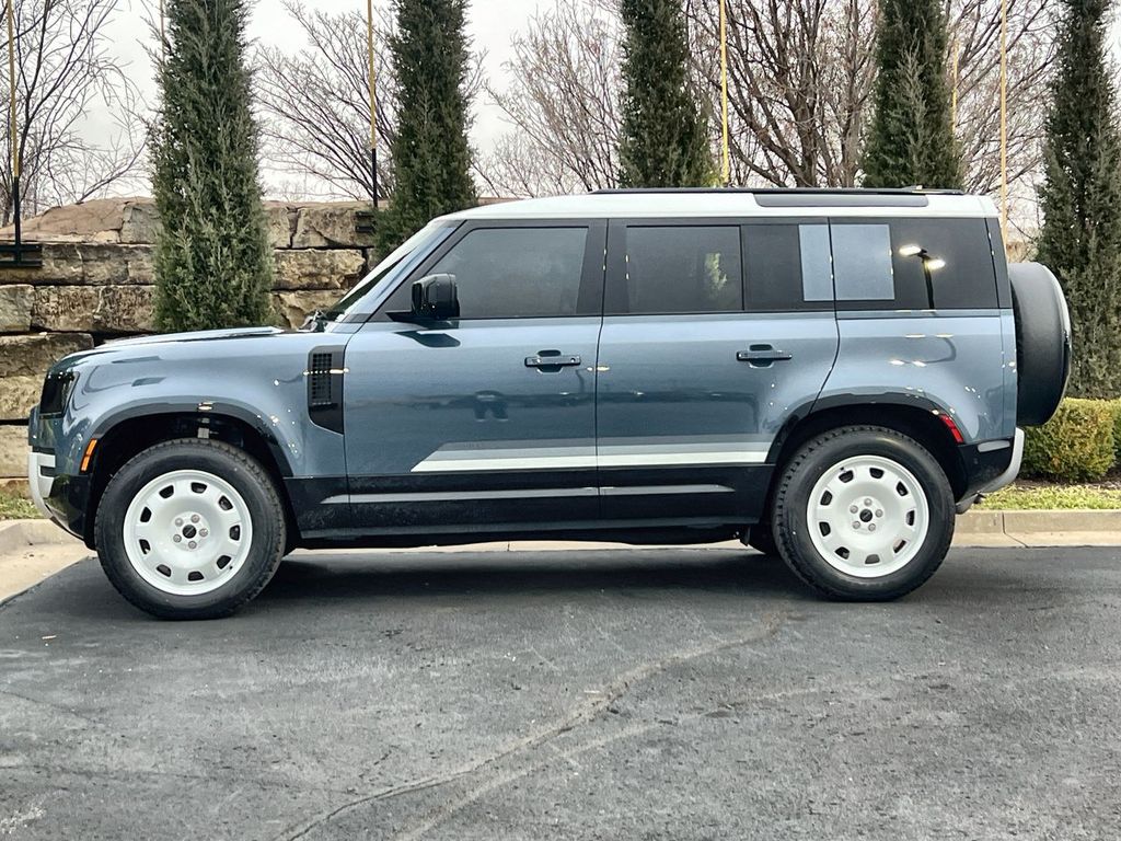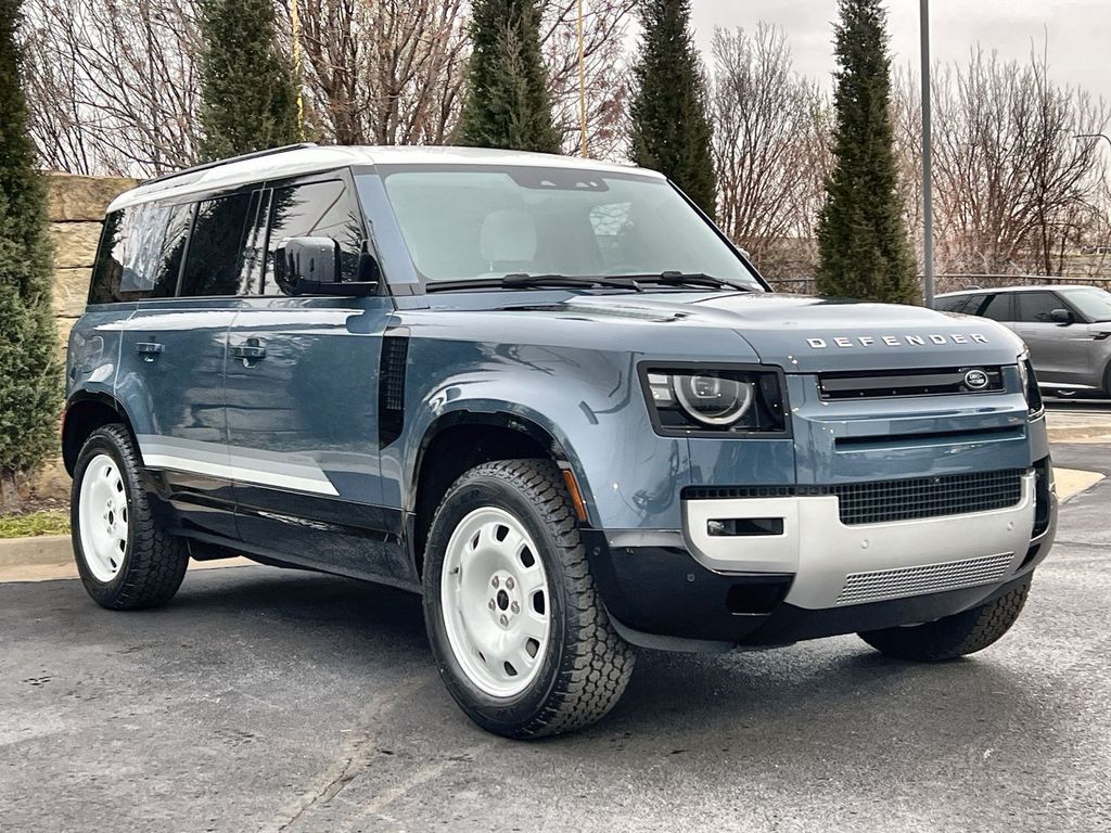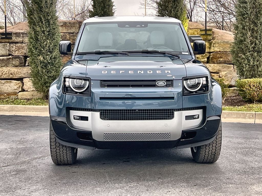 2026 Land Rover Defender 110 S Tasman Blue Metallic S AWD 8-Speed Automatic 2.0L I4 DI Turbocharged 20' Wheels, 3-Zone Climate Control, Active Cruise Control, Adaptive Dynamics, Air Suspension Pack, Cabin Air Purification Plus, Cold Climate Package, County Exterior Pack, County Graphic Decal, Electronic Air Suspension, Headlight Power Wash, Heated Windscreen, Illuminated Metal Treadplates with County Graphic, Rear Seat Convenience Pack, Robustec Veneer, Tow Hitch Receiver, Wheel Protection Pack, Wheels: 20' Gloss White Style 9013, White Contrast Roof.