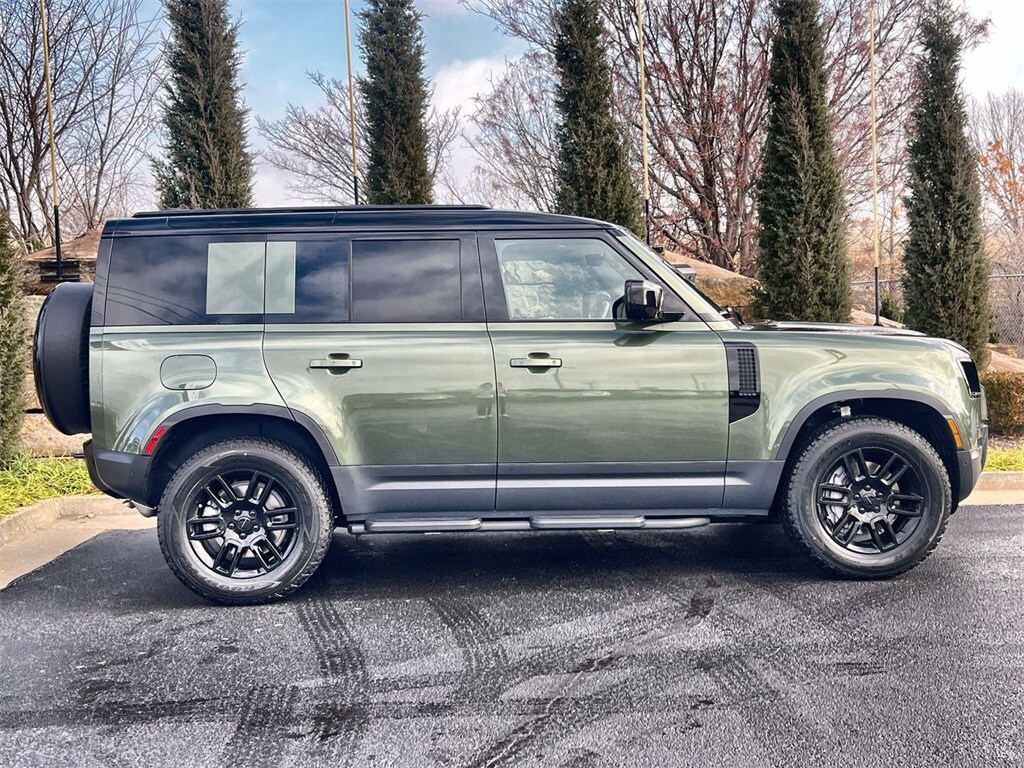 Clean CARFAX. Woolstone Green Metallic 2026 Land Rover Defender 110 S AWD 8-Speed Automatic 2.0L I4 DI Turbocharged 12-Way Heated Electric Memory Front Seats, 3-Zone Climate Control, 40:20:40 Folding Heated Rear Seats with Center Armrest, Adaptive Dynamics, Air Suspension Pack, AM/FM radio: SiriusXM, Apple CarPlay Android Auto, Auto High-beam Headlights, Black Contrast Roof, Black Exterior Pack, Black Fixed Side Steps, Cabin Air Purification Plus, ClearSight Interior Rear View Mirror, Cold Climate Package, Electronic Air Suspension, Front dual zone A/C, Front fog lights, Garage door transmitter: HomeLink, Headlight Power Wash, Heated steering wheel, Heated Windscreen, Navigation system: Connected Navigation PIVI Pro, Power moonroof, Radio: Meridian Sound System, Rain sensing wipers, Speed-Sensitive Wipers, Tow Hitch Receiver, Wheels: 19' Gloss Black Style 6010.