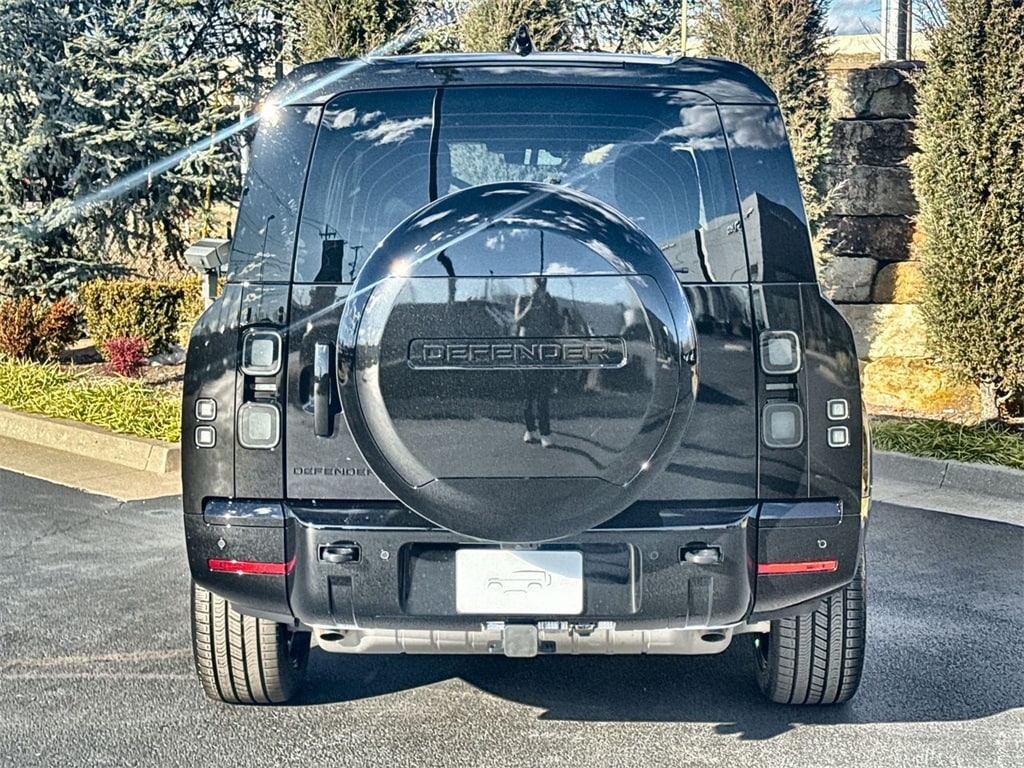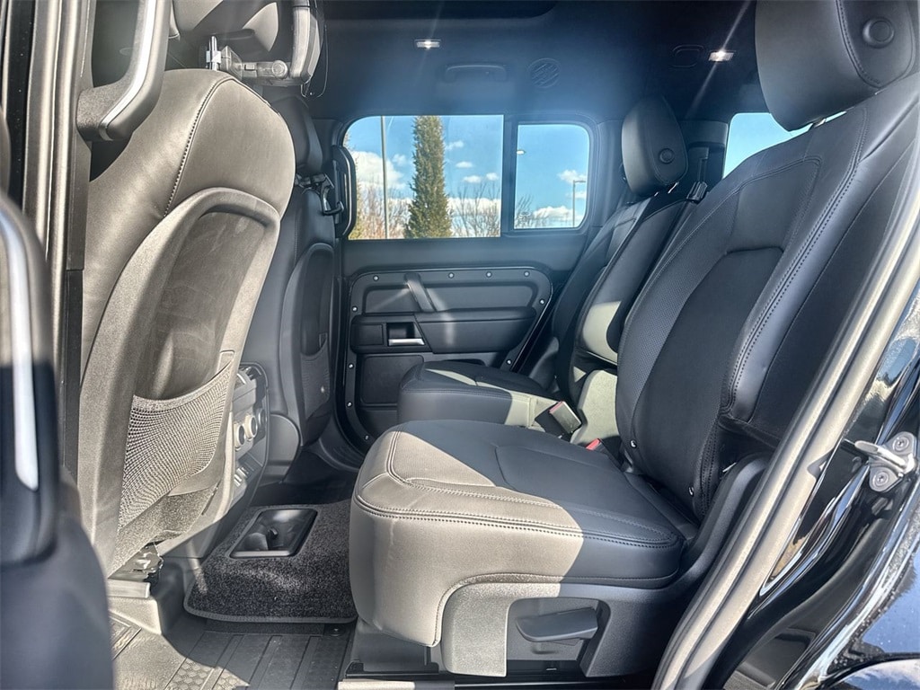 2026 Land Rover Defender 130 X-Dynamic SE Santorini Black Metallic X-Dynamic SE AWD 8-Speed Automatic 3.0L I6 14-Way Heated Cooled Electric Memory Front Seats, 2nd Row Heated Cooled Captain Chairs, 4-Zone Climate Control, Active Cruise Control, Adaptive suspension, Black Fixed Side Steps, Body-Colored Roof, ClearSight Interior Rear View Mirror, Cold Climate Package, Extended Black Exterior Pack, Extended Leather Upgrade, Four wheel independent suspension, Head-Up Display, Headlight Power Wash, Heated 3rd Row Seats, Heated Windscreen, Leather Gearshift, Leather Steering Wheel, Memory seat, Premium Upgrade Interior Pack, Radio: Meridian Surround Sound System, Tow Hitch Receiver, Wheels: 22' Gloss Black Style 5098.