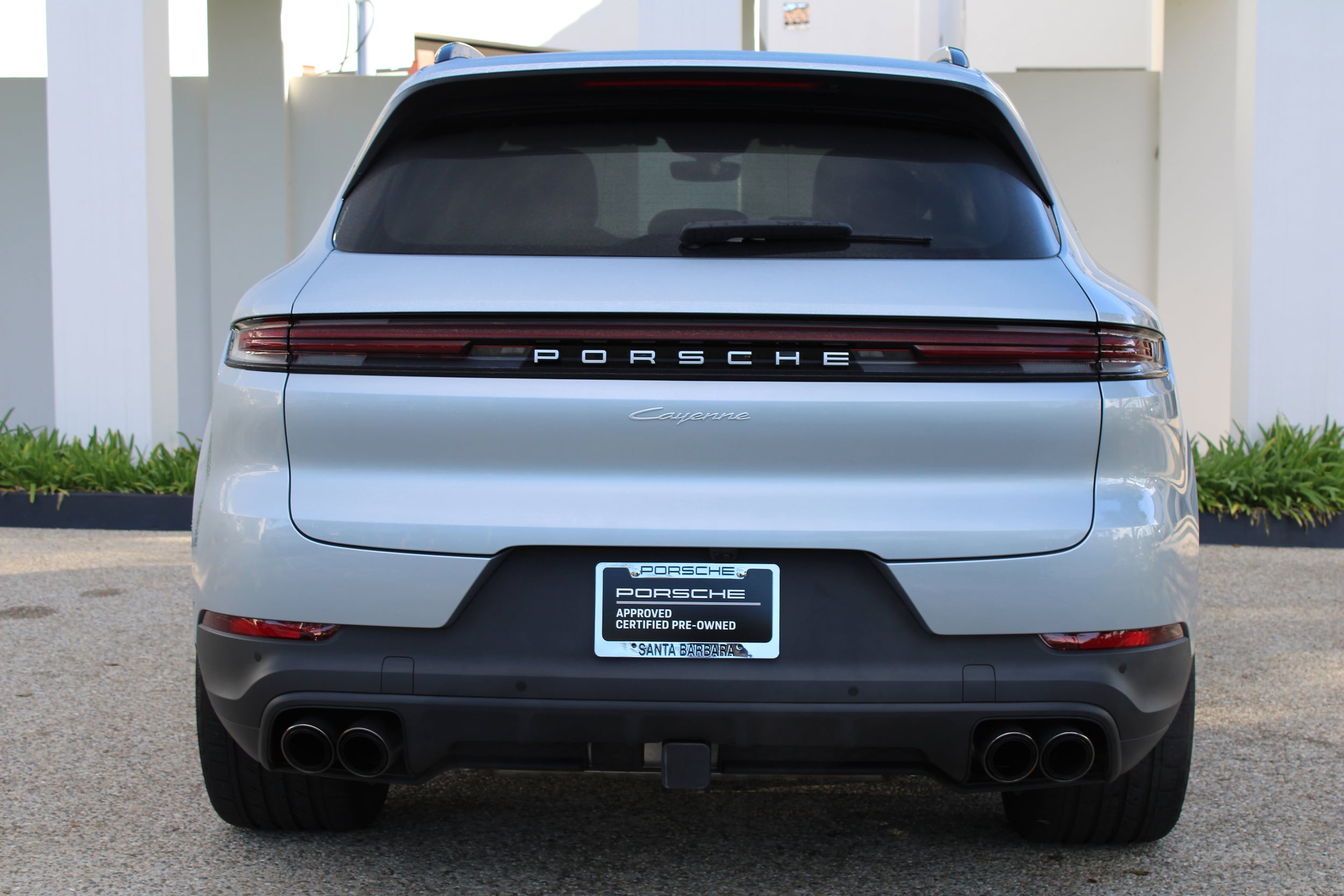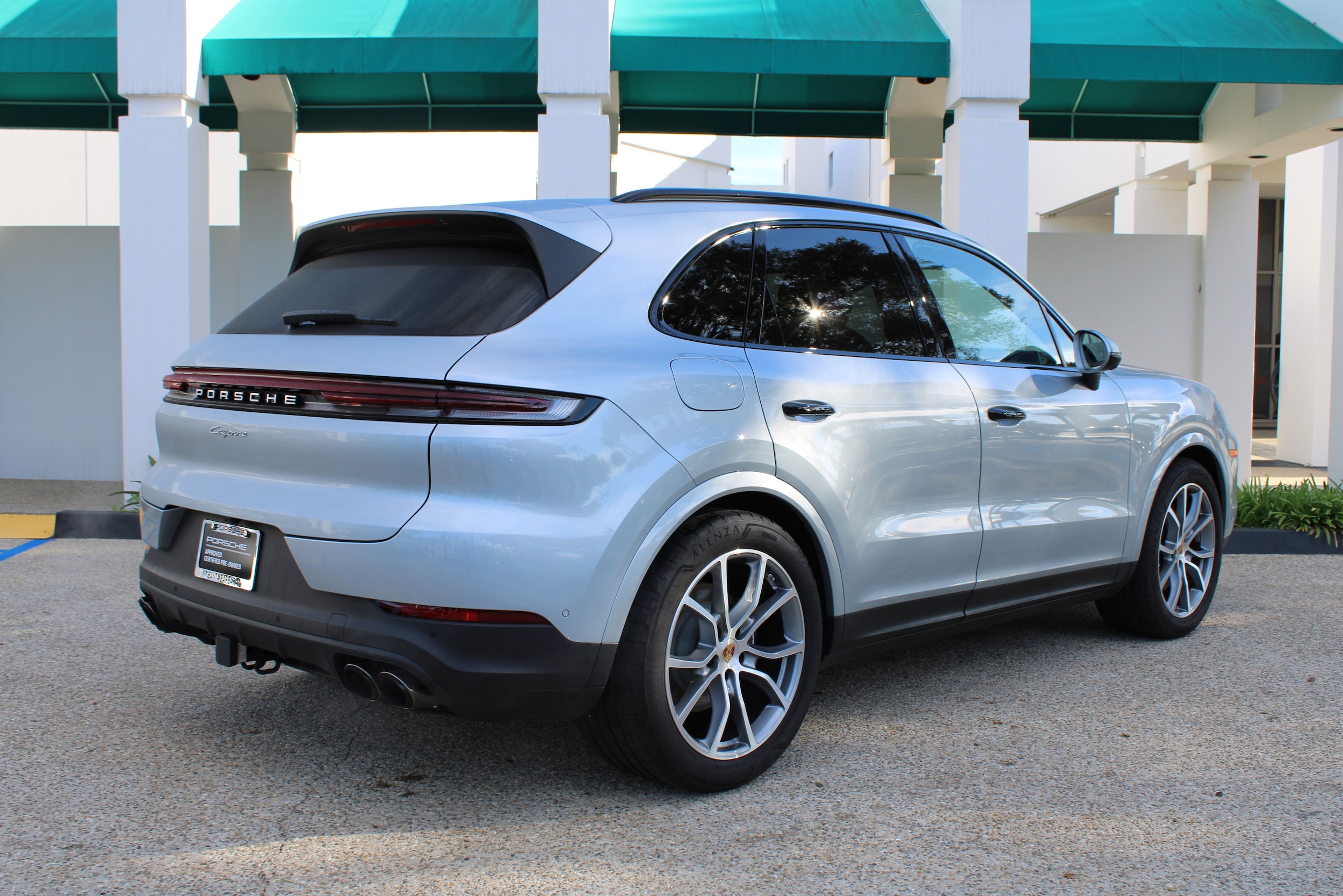 Clean CARFAX. Certified. Dolomite Silver Metallic 2025 Porsche Cayenne Base AWD 8-Speed Automatic with Tiptronic 3.0L V6. Porsche Approved Certified Pre-Owned with added 2 year and/or unlimited miles expires 06/25/2031. 14-Way Power Seats w/Comfort Memory, 4-Zone Climate Control, Adaptive Air Suspension w/PASM, Adaptive Cruise Control w/Lane Keep Assist (LKA), Alloy wheels, BOSE Surround Sound System, Door Handles in High Gloss Black, Front Ventilated Seats, HD-Matrix Design LED Headlights, Heated GT Sport Steering Wheel in Leather, Panoramic Roof System, Premium Package Plus, Rear Heated Seats, Roof Rails in Black Aluminum Finish, Sport Chrono Package, Sport Exhaust System w/Tailpipes in Dark Bronze, Trailer Hitch w/o Tow Ball, Wheels: 21 Cayenne Exclusive Design, Window Trim in High Gloss Black. Odometer is 2139 miles below market average! Porsche Approved Certified Pre-Owned Details:
