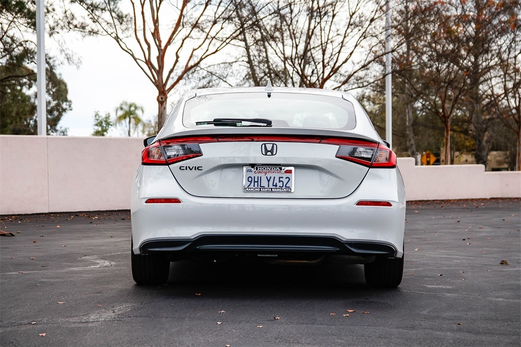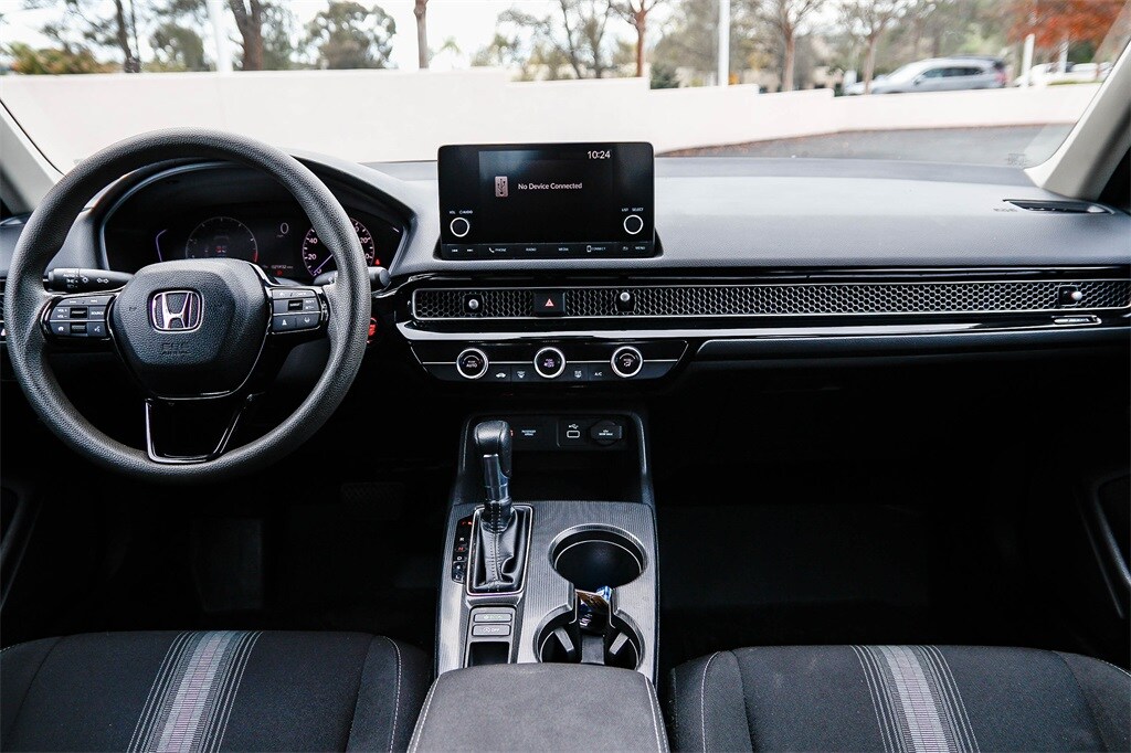 2023 Honda Civic LX 2.0L I4 DOHC 16V Platinum White Pearl Clean CARFAX. 30/38 City/Highway MPG CARFAX One-Owner. Black Cloth, Adaptive Cruise Control: Adaptive Cruise Control (ACC) with Low-Speed Follow, Apple CarPlay/Android Auto, Exterior Parking Camera Rear, Lane departure: Lane Keeping Assist System (LKAS) active, Remote keyless entry, Steering wheel mounted audio controls. The drive to Honda Rancho Santa Margarita, CA, is a scenic journey that winds through the heart of Orange County, blending suburban charm with natural beauty. As you make your way south along the I-5 or east from the coast, the urban landscape gradually gives way to rolling hills, open spaces, and picturesque neighborhoods. Towering palm trees line the roads, and the backdrop of the Santa Ana Mountains becomes more prominent the closer you get. Whether you�??re arriving from the bustling city or the coastal towns, the approach to our dealership in beautiful Rancho Santa Margarita feels like a peaceful retreat and to top it off with every vehicle purchase, we will be sending you off with a FULL TANK GAS, courtesy of your local Honda helpful dealer. Be sure to ask about the following products we offer: Wheel Black-out Powder Coating, Wheel and Tire Packages, Black Out Packages, Leather Packages, Window Tint, Extended Warranties, Service Contracts, Vinyl Wraps, Ding and Dent Protection, Wheel and Tire Protection.