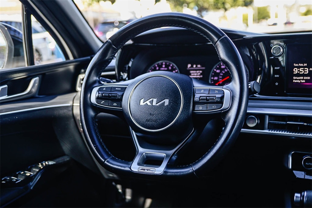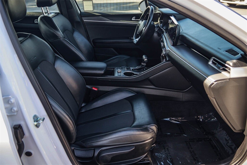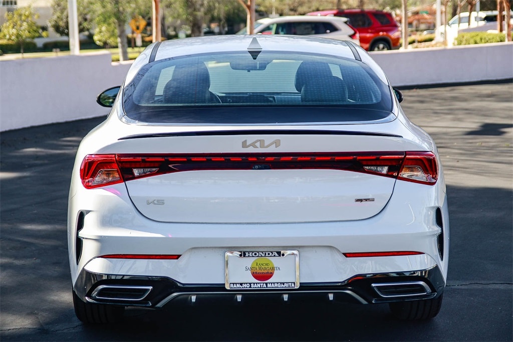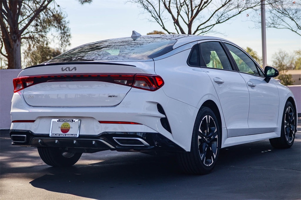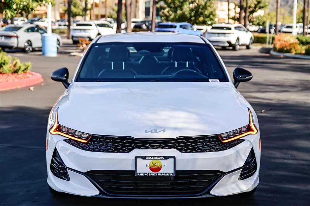 �??We Keep Used Car Buying Simple.�?? No hidden accessories. No unexpected dealer add-ons. Just fair pricing. Experience sporty style and confident performance in the 2025 Kia K5 GT-Line, available now at Rancho Santa Margarita Honda. Designed for drivers who want a stylish midsize sedan with a dynamic edge, the K5 GT-Line delivers responsive handling, bold design, and advanced technology features. Under the hood, the K5 GT-Line offers a turbocharged engine paired with a smooth transmission for an engaging drive. The GT-Line trim enhances its athletic appeal with aggressive exterior styling, sleek alloy wheels, and a sport-tuned suspension that hugs curves with confidence. Inside, the cabin combines modern design with driver-focused technology. Enjoy a touchscreen infotainment system with Apple CarPlay® and Android Auto�?� integration, available navigation, premium audio, and comfortable seating with thoughtful accents that elevate your everyday drive. Safety and peace of mind come standard with advanced driver-assist features, including lane keeping assist, forward collision warning, and adaptive cruise control �?' giving you confidence on every journey. Visit Rancho Santa Margarita Honda today to experience the perfect blend of performance, style, and technology in the 2025 Kia K5 GT-Line. 2023 Kia K5 GT-Line 1.6L I4 DGI Turbocharged DOHC 16V LEV3-ULEV70 180hp Glacial White Pearl 27/37 City/Highway MPG CARFAX One-Owner. Apple CarPlay Android Auto, Navigation System, Steering wheel mounted audio controls, Wheels: 18' Gloss Black Machined Finish Alloy. The drive to Honda Rancho Santa Margarita, CA, is a scenic journey that winds through the heart of Orange County, blending suburban charm with natural beauty. As you make your way south along the I-5 or east from the coast, the urban landscape gradually gives way to rolling hills, open spaces, and picturesque neighborhoods. Towering palm trees line the roads, and the backdrop of the Santa Ana Mountains becomes more prominent the closer you get. Whether you�??re arriving from the bustling city or the coastal towns, the approach to our dealership in beautiful Rancho Santa Margarita feels like a peaceful retreat and to top it off with every vehicle purchase, we will be sending you off with a FULL TANK GAS, courtesy of your local Honda helpful dealer. Be sure to ask about the following products we offer: Wheel Black-out Powder Coating, Wheel and Tire Packages, Black Out Packages, Leather Packages, Window Tint, Extended Warranties, Service Contracts, Vinyl Wraps, Ding and Dent Protection, Wheel and Tire Protection.