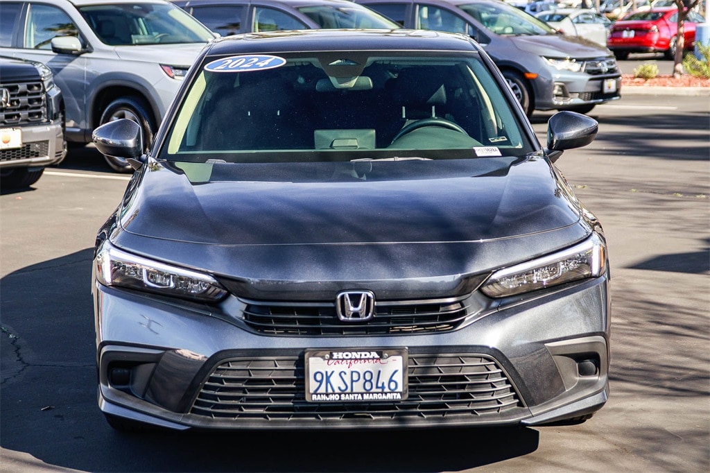 �??We Keep Used Car Buying Simple.�?? No hidden accessories. No unexpected dealer add-ons. Just fair pricing. 2024 Honda Civic EX 1.5L I4 DOHC 16V Meteorite Gray Metallic 33/42 City/Highway MPG CARFAX One-Owner. Black Cloth, Adaptive Cruise Control: Adaptive Cruise Control (ACC) with Low-Speed Follow, Apple CarPlay/Android Auto, Blind Spot Information (BSI) System warning, Exterior Parking Camera Rear, Heated front seats, Power moonroof, Remote keyless entry, Steering wheel mounted audio controls, Wheels: 17' Alloy w/Gloss Black Inserts. The drive to Honda Rancho Santa Margarita, CA, is a scenic journey that winds through the heart of Orange County, blending suburban charm with natural beauty. As you make your way south along the I-5 or east from the coast, the urban landscape gradually gives way to rolling hills, open spaces, and picturesque neighborhoods. Towering palm trees line the roads, and the backdrop of the Santa Ana Mountains becomes more prominent the closer you get. Whether you�??re arriving from the bustling city or the coastal towns, the approach to our dealership in beautiful Rancho Santa Margarita feels like a peaceful retreat and to top it off with every vehicle purchase, we will be sending you off with a FULL TANK GAS, courtesy of your local Honda helpful dealer. Be sure to ask about the following products we offer: Wheel Black-out Powder Coating, Wheel and Tire Packages, Black Out Packages, Leather Packages, Window Tint, Extended Warranties, Service Contracts, Vinyl Wraps, Ding and Dent Protection, Wheel and Tire Protection.