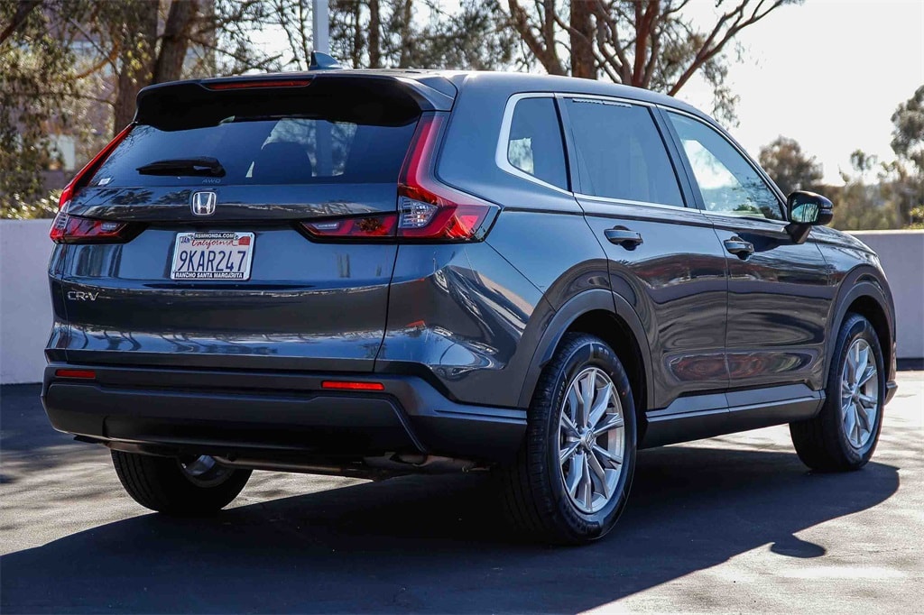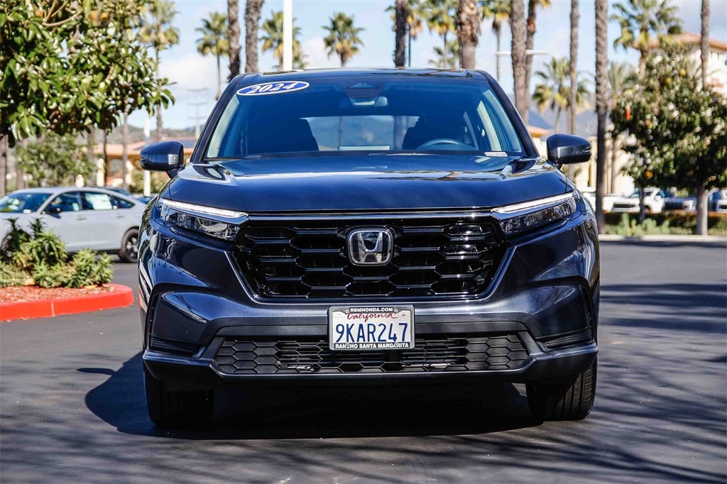 2024 Honda CR-V EX 1.5L I4 DOHC 16V Meteorite Gray Metallic Clean CARFAX. 27/32 City/Highway MPG CARFAX One-Owner. AWD. The drive to Honda Rancho Santa Margarita, CA, is a scenic journey that winds through the heart of Orange County, blending suburban charm with natural beauty. As you make your way south along the I-5 or east from the coast, the urban landscape gradually gives way to rolling hills, open spaces, and picturesque neighborhoods. Towering palm trees line the roads, and the backdrop of the Santa Ana Mountains becomes more prominent the closer you get. Whether you�??re arriving from the bustling city or the coastal towns, the approach to our dealership in beautiful Rancho Santa Margarita feels like a peaceful retreat and to top it off with every vehicle purchase, we will be sending you off with a FULL TANK GAS, courtesy of your local Honda helpful dealer. Be sure to ask about the following products we offer: Wheel Black-out Powder Coating, Wheel and Tire Packages, Black Out Packages, Leather Packages, Window Tint, Extended Warranties, Service Contracts, Vinyl Wraps, Ding and Dent Protection, Wheel and Tire Protection.